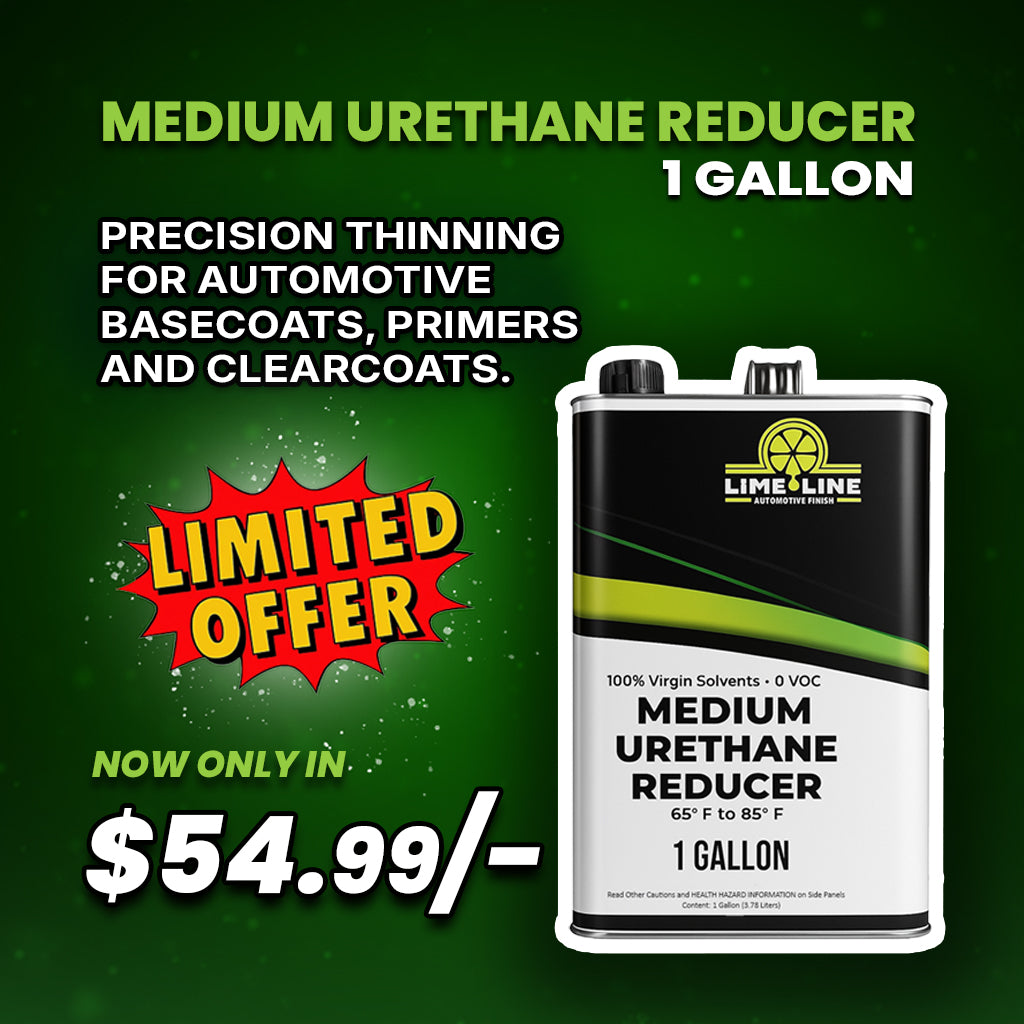 Prep the metal or plastic surface, apply Epoxy or High-Build Primer, spray the Basecoat mixed 1:1 with Urethane Reducer, and finish with a 2K Clear Coat for protection, and durability.