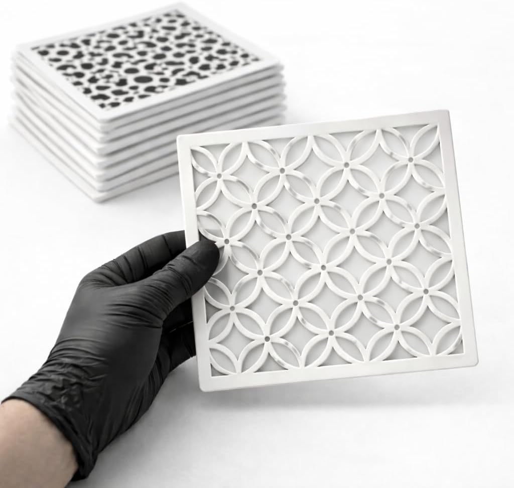 This pack includes nine different stencils specially designed to create mesmerizing 3-D illusions on any surface when used with an airbrush. Each stencil is carefully crafted for optimal performance and stunning results. Made of high-quality plastic Mylar, these stencils are not only reusable but also easy to clean, ensuring long-lasting use and endless creativity.